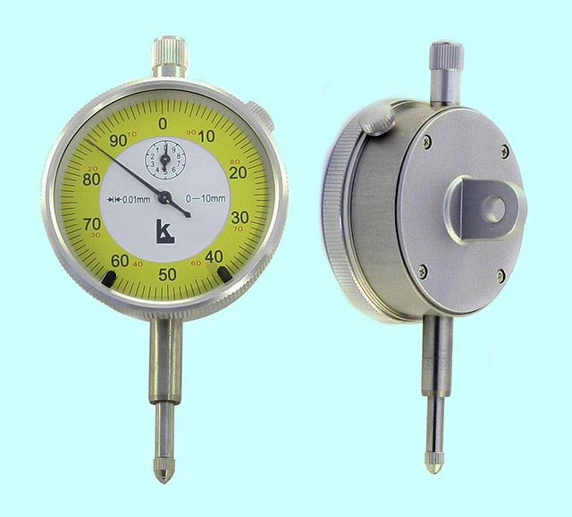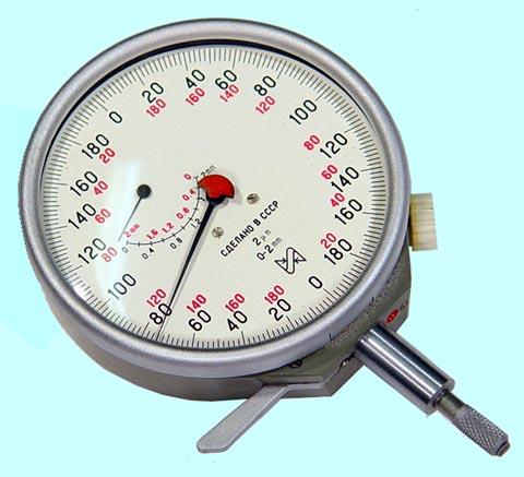 ГОСТ 5584-75 Цена деления 0.01 мм. Предназначены для абсолютных и относительных измерений линейных размеров, контроля отклонений от заданной геометрической формы и взаимного расположения поверхностей. Индикаторы с диапазоном измерения 0 - 2 мм выпускаются в двух исполнениях: ИЧ - с перемещением измерительного стержня параллельно шкале; ИТ - с перемещением измерительного стержня перпендикулярно шкале. Крепят индикаторы либо за присоединительную гильзу диаметром 8h7, либо за ушко толщиной 5 мм с присоединительным отверстием диаметром 5 мм. Наличие поворотного измерительного рычага, малые габариты и незначительное измерительное усилие позволяют использовать прибор в трудно доступных местах, а также в случаях требующих малого измерительного усилия.