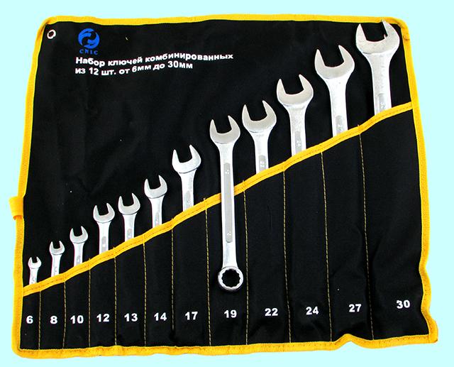 Набор ключей Рожковых из 12-ти шт. (6х7 - 30х32) покрытие хром (TS-001) в сумке "CNIC" |