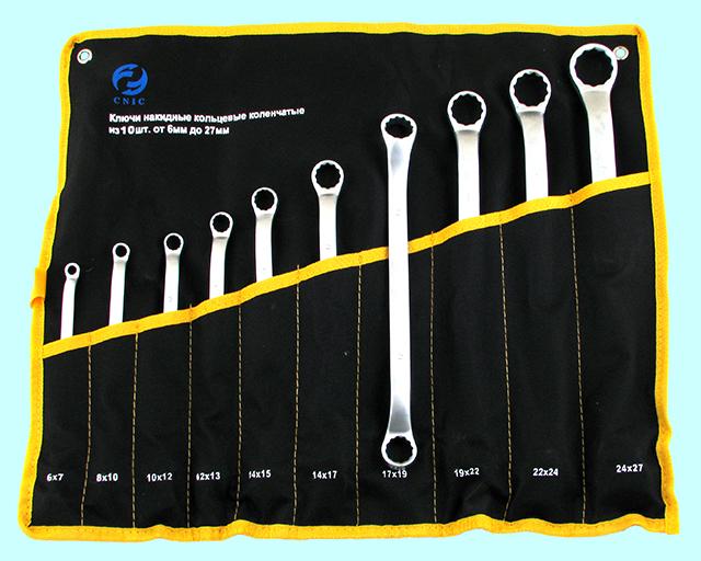 Набор ключей Накидных из 10-ти шт. (6х7 - 24х27) в сумке хром-ванадий (сатингфиниш) #984 "CNIC"