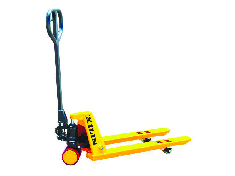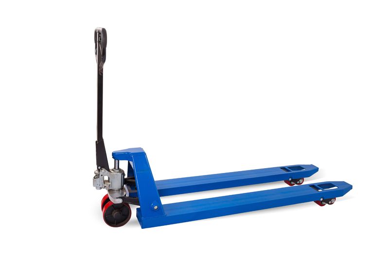 Клиновидная форма и дополнительный ролик на концах вил обеспечивают легких ввод и вывод гидравлической тележки при работе с грузовыми паллетами.