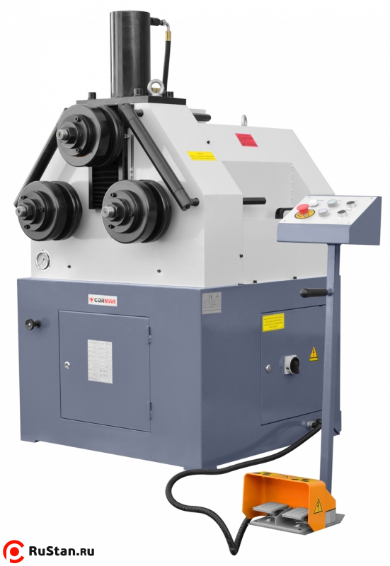Гибочный станок для труб и профилей CORMAK RBM 65 имеет конструкцию из сварных стальных листов. Гидравлический гибочный станок характеризуется более высокой мощностью по сравнению с традиционными. Обе оси гибочного станка приводятся в движение при помощи сильного гидравлического двигателя, тогда как верхнее колесо поднимается с помощью гидравлического цилиндра оси. Контрольная панель с кнопками обеспечивает надежную работу станка. Стандартные гибочные ролики дают возможность гибки различных материалов в различных формах.