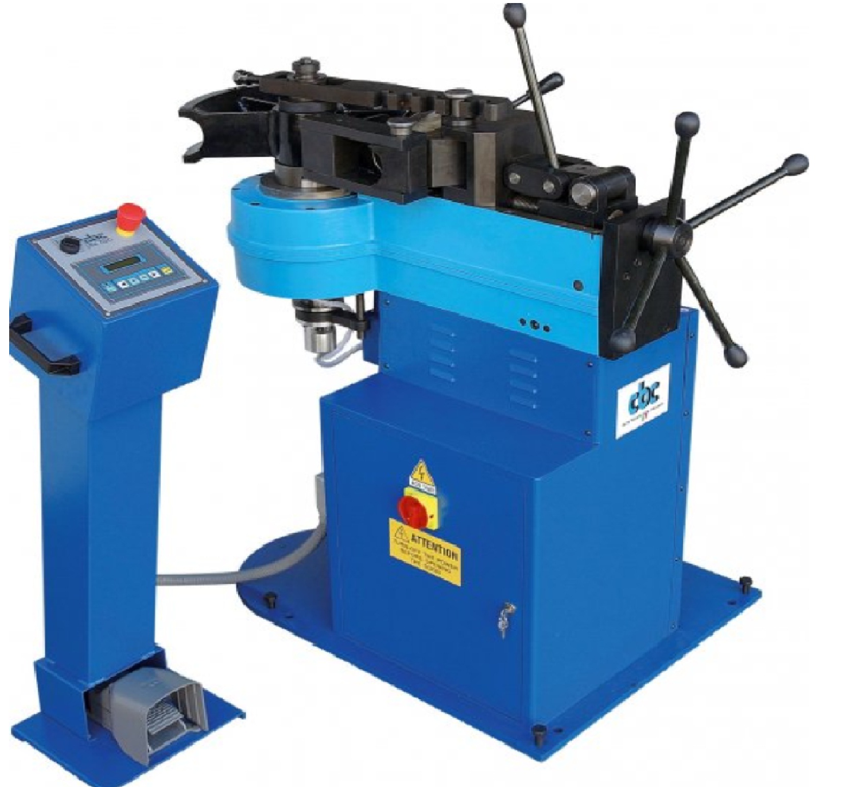 Для управления установкой предусмотрен выносной блок, содержащий кнопку аварийной остановки и педали. Верхний ролик может регулироваться по высоте при помощи рычага.