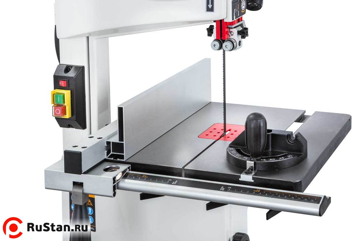 Данная модель имеет максимальное для своего класса оснащение и, кроме привычных «обязательных» функций и настроек, у нее есть и все вспомогательные. Среди них рычаг для быстрого ослабления и натяжения полотна, позволяющий одним движением переводить станок из состояния хранения в рабочее. Светодиодная подсветка рабочей области с гибким штативом. Патрубок аспирации со ступенчатым подключением шланга диаметром 50, 75 или 100 мм.