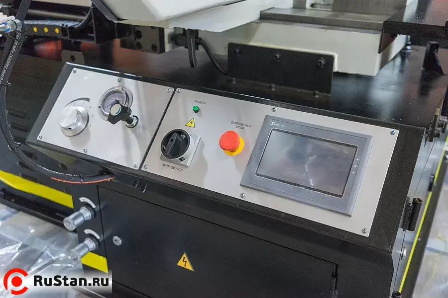- Станок оснащён серводвигателем для плавной регулировки скорости вращения полотна 15-90 м/мин