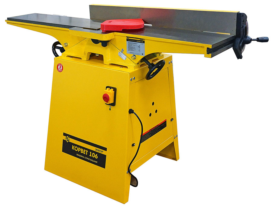 JJ-6OS — фуговальный станок с длинными чугунными столами для любительского применения. Имеет классический дизайн с регулировкой высоты столов по наклонным направляющим. Базируется на открытой подставке, в пространстве которой расположен асинхронный однофазный двигатель. Привод ножевого барабана одним клиновым ремнем. Регулируемый фуговальный упор и его кронштейн сделаны из массивных чугунных отливок. Сдвижной защитный экран – алюминиевый. Стружка удаляется через 100-миллиметровый патрубок и кожух, расположенные снизу станка.