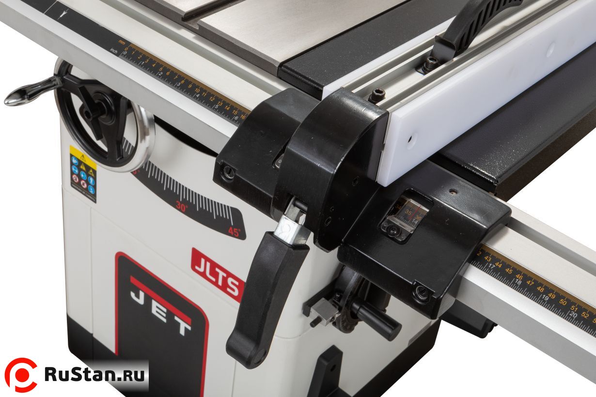 Система безопасности станка выполнена на высоком уровне. Здесь используется подпружиненная зубчатая защита от обратного удара, а также двухсторонний прозрачный экран, полностью закрывающий пильный диск. Экран не мешает обзору зоны пиления и легко поднимается над заготовкой с любой стороны диска — как с двух одновременно, так и с одной, в зависимости от геометрии детали. Безопасность оператора — приоритет для марки JET. Если защитные элементы не требуются во время работы (например, при пазовании), для каждого из них предусмотрено отдельное место в органайзере на корпусе станка. Порядок в мастерской — залог качественного результата.