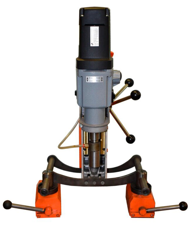 Магнитная сверлильная машина на магнитной подушке отлично подходит для применения в условиях, где применение стационарного станка не предоставляется невозможным или нецелесообразным. Благодаря небольшому весу, 16.5 кг, удобной и компактной конструкции, а также наличие мощного магнита делают его отличным электроинструментом в любой ситуации. Сверлильная машина на магнитном основании, с увеличенной силой притяжения к неровным поверхностям (система MFSC), будет незаменимым в работе при ремонте мостов, в полевых условиях, судостроении, в строительстве.