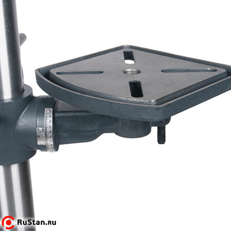 Рабочий стол можно вращать на 360° вокруг колонны, а так же использовать наклон под углом + / - 45° от основной плоскости, что позволяет обрабатывать отверстия под различными углами.