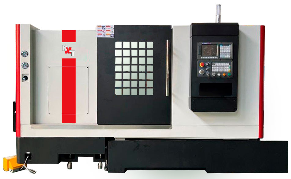 Агрегаты станка располагаются на цельнолитой наклонной станине с углом наклона 45°, имеющей компактную высокоинтегрированную конструкцию, высокую жесткость, устойчивость к нагрузкам и вибростойкость. Наклонная станина обеспечивает стабильное распределение нагрузки и надежную поддержку револьверной головы в процессе резания. Станина, передняя бабка и суппорт изготовлены из высокопрочного чугуна с термической обработкой и искусственным старением, их конструкция рассчитана с применением методов конечных элементов и динамического анализа. Суппорт станка двигается в двух направлениях (оси X и Z) по высокоскоростным линейным направляющим качения.