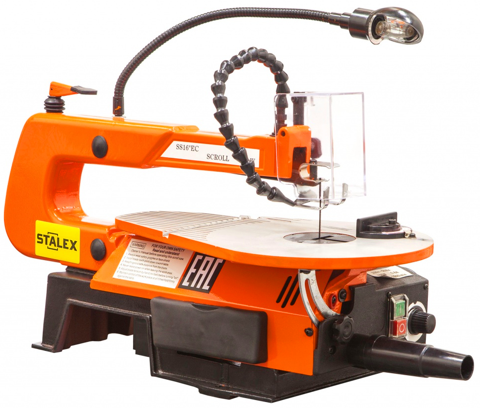 - Литая конструкция лобзика гарантирует устойчивость и снижает вибрации;